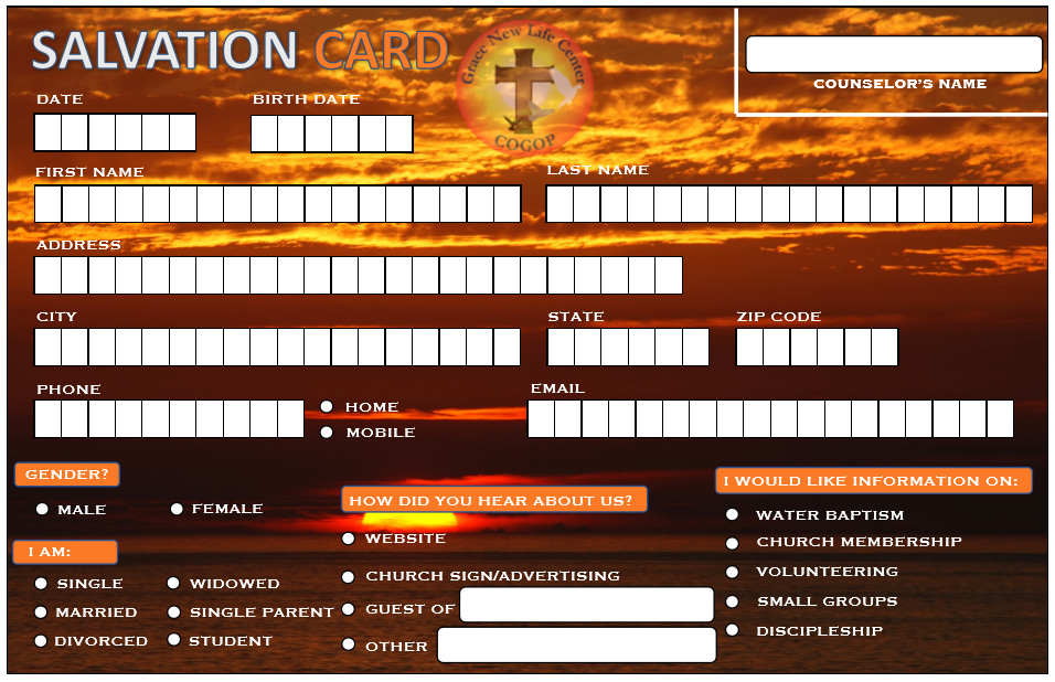 It is necessary for everyone who decides to dedicate their child at Grace New Life Center to have one counseling session with the pastor before the dedication service.  By checking the checkbox below you are to agreeing to the counseling session.